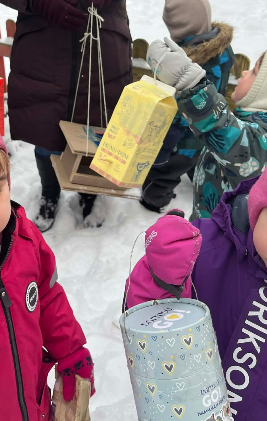 Gruodžio mėnesį, prieš kalėdines atosotogas skelbėme akciją „Pagalba žiemojantiems paukšteliams”, kurios metus raginome darželio vaikus ir tėvelius kartu kurti lesyklėles ir po atostogų atnešti jas į darželį kartu pasirūpinant mastu žiemojantiems paukšteliams. Vaikai taip pat aktyviai gamino lesyklėles ir darželyje mokytojų organizuotose kūrybinėse eduakcinėse dirbtuvėlėse. Kartu pagaminta daug nuostabių lesyklėlių. Ačiū visiems, prisidėjusiems savo darbu ir širdies šiluma!