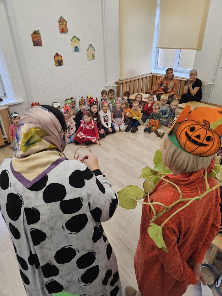 Spalio 15 ir 16 dienomis darželyje šurmuliavo rudenėlio pramogos. Darželyje A.Mickevičiaus g. 21 Moliūgas ir Obelis dalinosi džiaugsmais ir rūpestėliais, o darželio padalinyje Miglos g. 53 Senelis ir Senelė kepė bulvinius blynus.