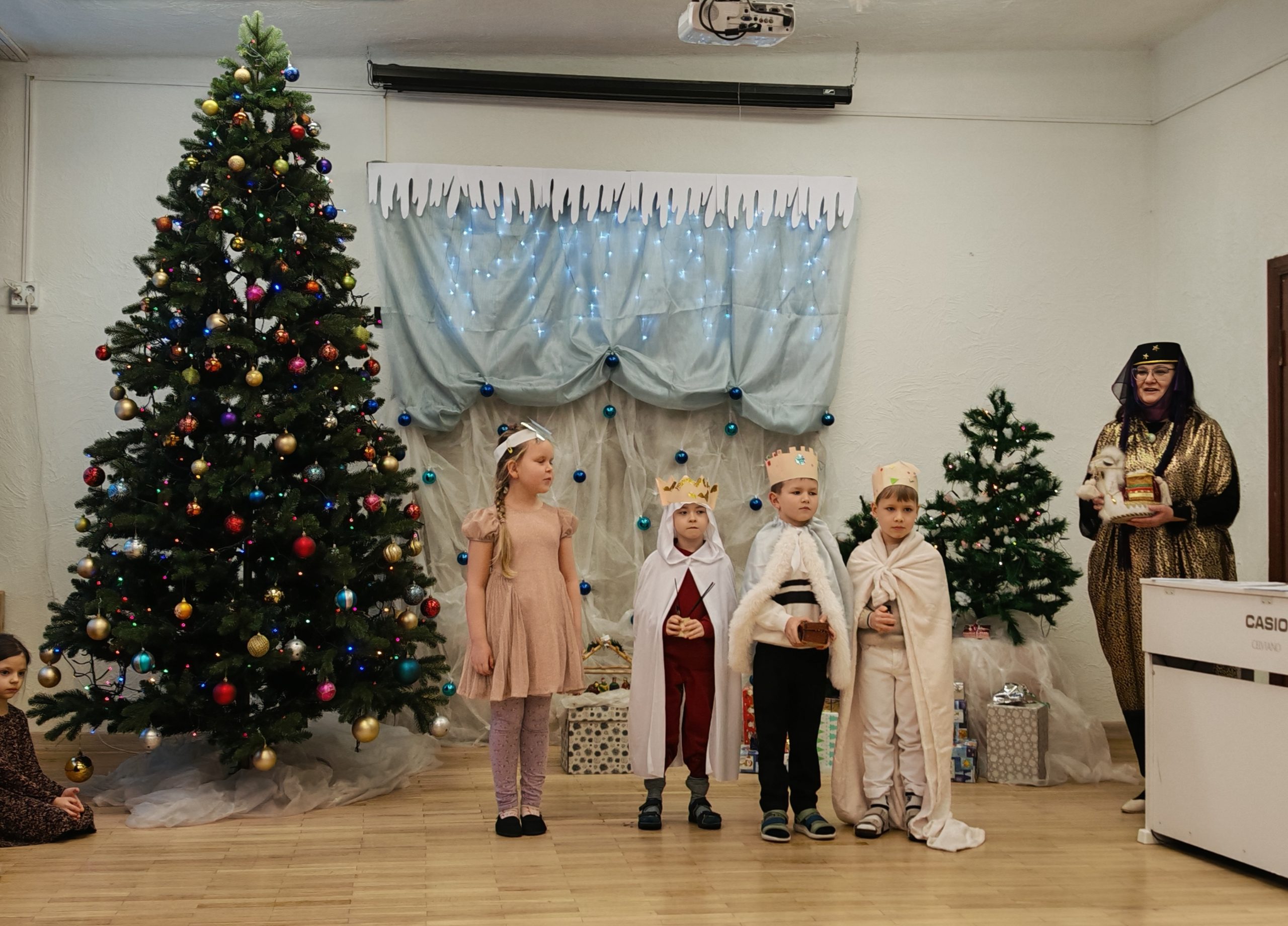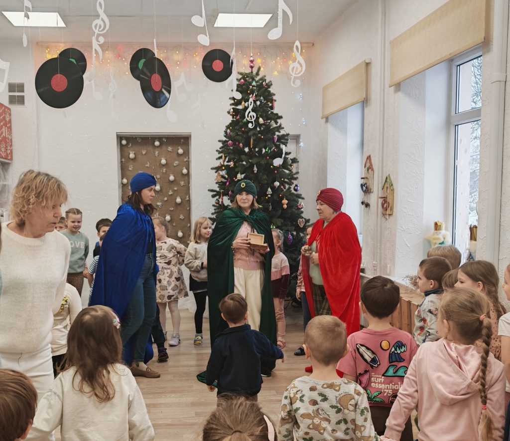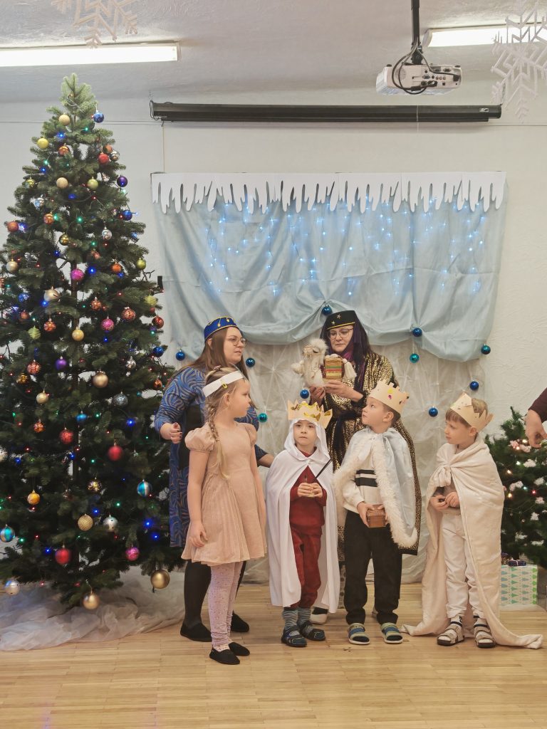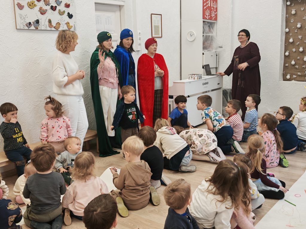 Su Trimis karaliais užbaigiame kalėdinių švenčių ciklą… Atsisveikinome su Kalėdų eglute… Bet visai neliūdna, nes Trys karaliai dosniai apdovanojo vaikus džiaugsmu, dainomis, žaidimais ir smagiomis akimirkomis. Visi kartu klausėmės Trijų karalių istorijos apie jų kelionę, apžiūrėjome kūdikėlio Jėzaus dovanas, smagiai dainavome ir šokome.